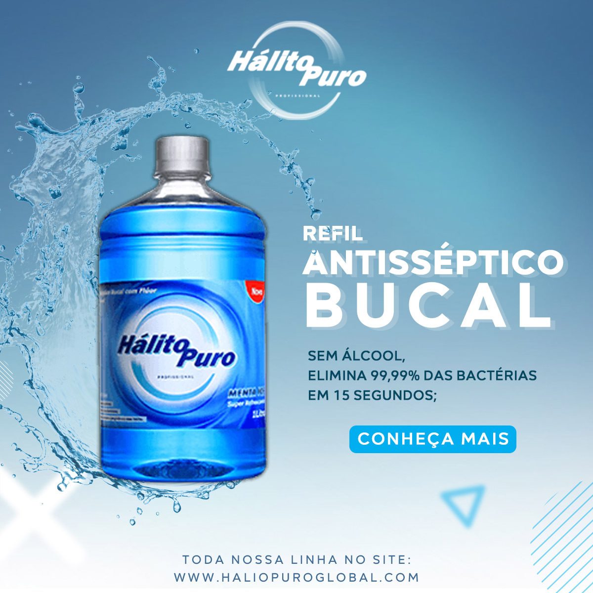 ➡O Antisséptico bucal Hálito Puro previne as cáries e doenças gengivais através do flúor e de agentes bactericidas em sua